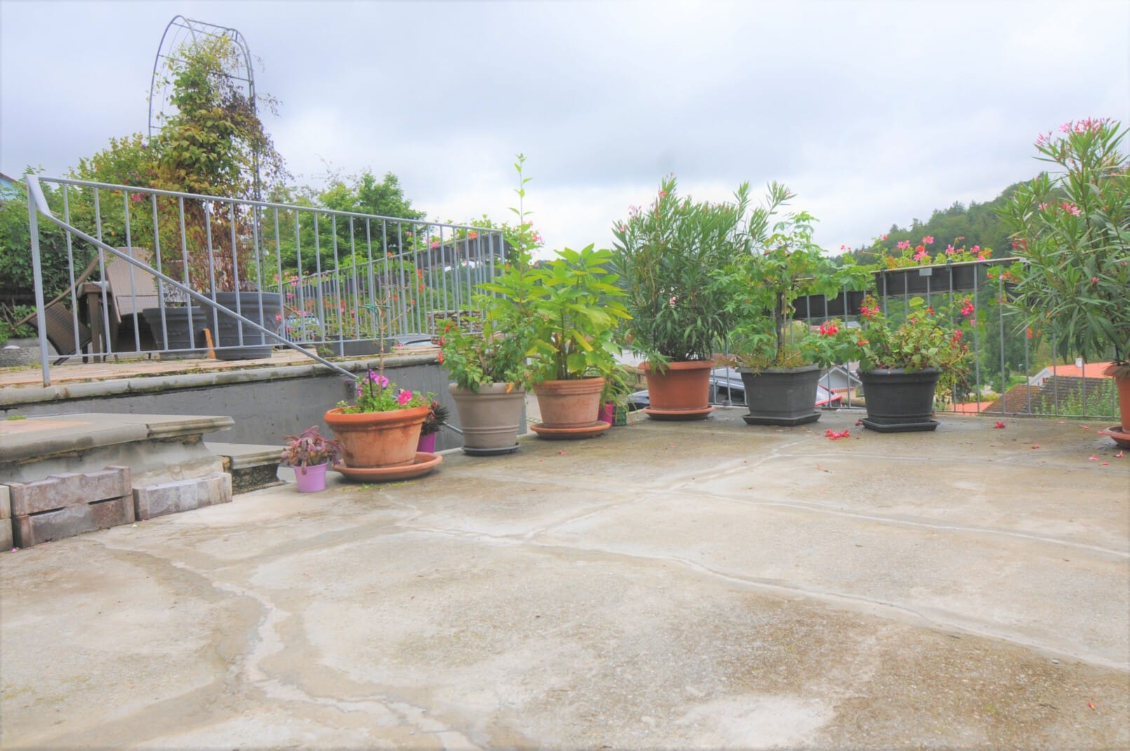 Von der großen Terrasse der Doppelhaushälfte lässt sich das darunter liegende Tal schön überblicken.