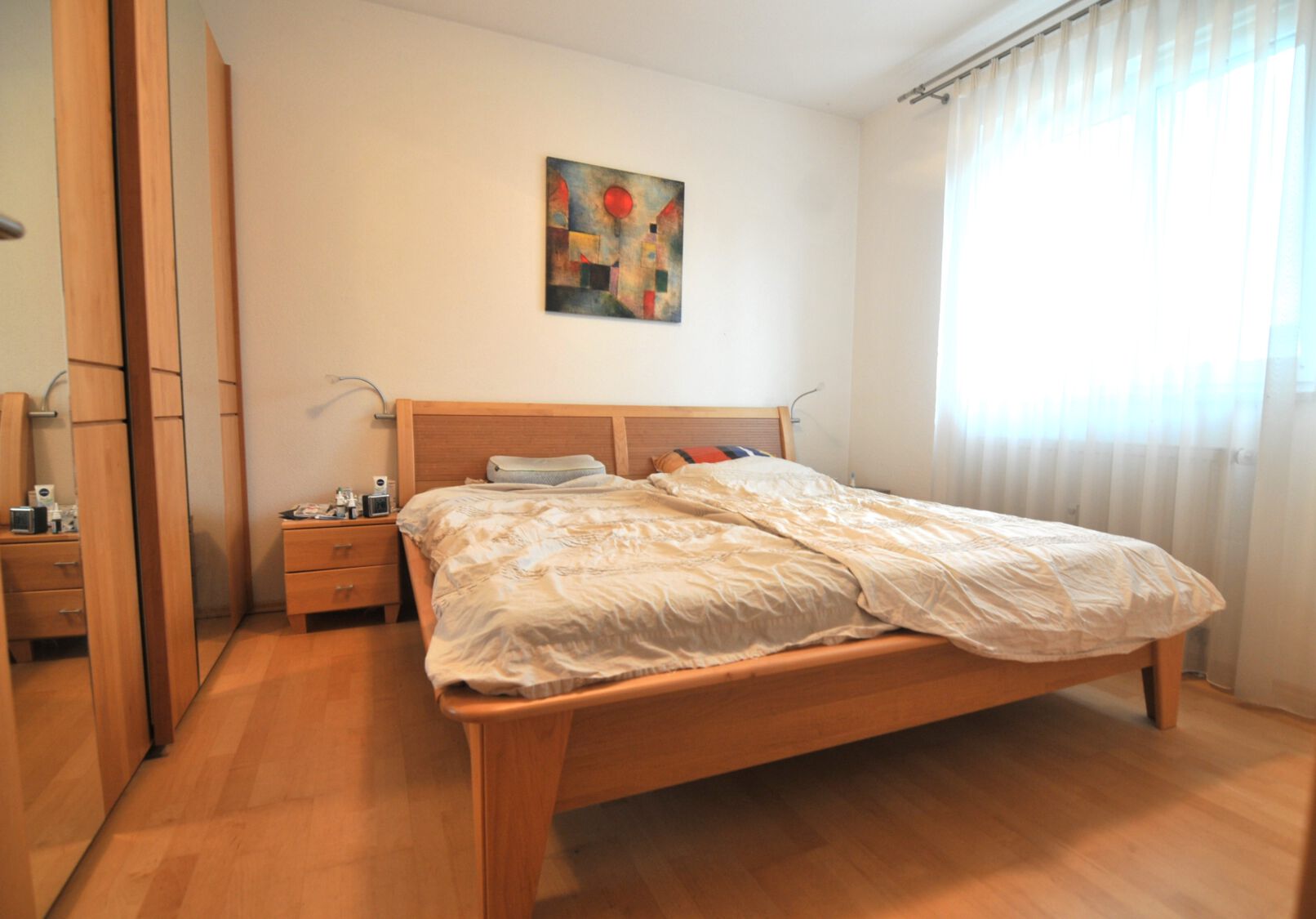 Schlafzimmer mit ausreichend Platz für ein Doppelbett und einen XL-Kleiderschrank